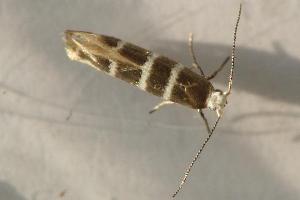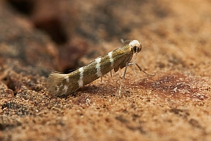 Die drei weissen Querbinden auf braunem Grund machen die Art unverwechselbar.