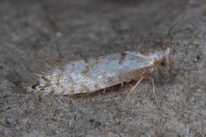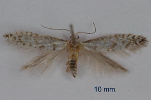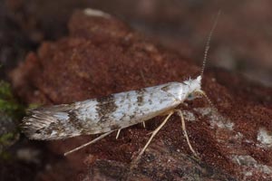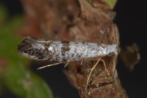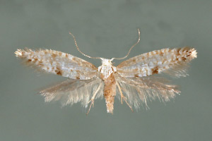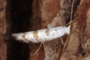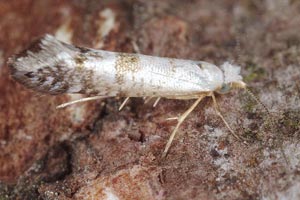 - Argyresthia retinella (dunkle Hinterrandflecken weniger ausgeprägt, an Birke gebunden)
