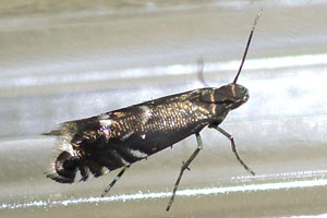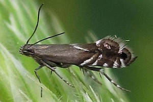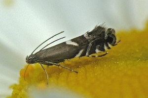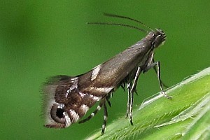 Glyphipterix simpliciella ist eine schmalflügelige und kleine Art (Flügelspannweite von 6-9 mm). Der weisse Hakenfleck am Vorderflügelinnenrand ist schmal, manchmal reduziert oder ganz erloschen. (Rudolf Bryner)