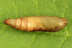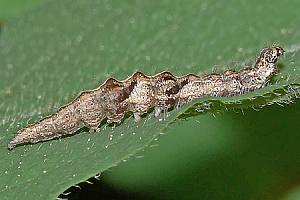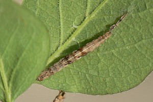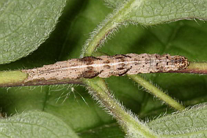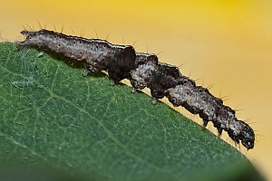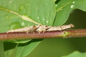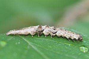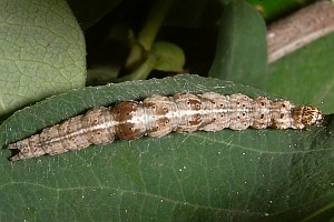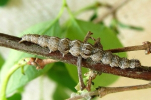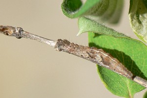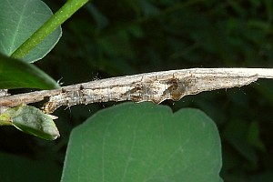 Die Raupe ruht tagsüber oft an Zweigen, wo sie hervorragend getarnt ist.