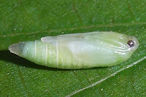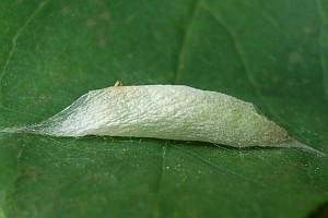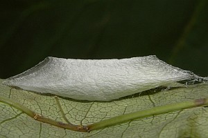 3: Verpuppungsgespinst, Funddaten siehe Falterbilder 2-3, 26. Mai 2008 (Studiofoto: Heidrun Melzer)Forum