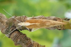 6: Deutschland, Sachsen, Noitzscher Heide bei Lindenhayn, Kokon mit Puppe 16. Juni 2010 an Stieleiche (Quercus robur), e.p. 21. Juni 2010 (leg., cult., det. & Foto: Heidrun Melzer)