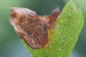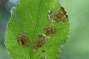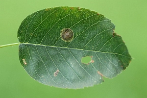 Die Minen (an verschiedenen Rosengewächsen und Birken) sind sehr charakteristisch: Die Raupe frisst sich an der Blattoberseite in Spiralen vom Minenbeginn nach außen. Die Kotlinie lässt die Fraßspur der Raupe noch erkennen, nachdem diese die Mine bereits verlassen hat (die Verpuppung erfolgt außerhalb der Mine). Es handelt sich aber nicht um eine spiralig verlaufende Gangmine, sondern um eine echte Platzmine, da keine Zwischenwände stehengelassen werden.