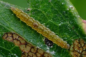 Schon in der Erstbeschreibung von Bechstein & Scharfenberg (1805): wird erwähnt, dass die Raupe an Weißdorn (Crataegus oxyacanthya) lebt, weshalb der Falter den deutschen Namen "Heckendornmotte" bekam. Der Name ist berechtigt, denn die allermeisten Nachweise erfolgen an Weißdorn. Nach Burmann (1991) handelt es sich um "Die einzige Art, deren Raupen an verschiedenen, holzigen Rosaceen leben, z.B. Pyrus communis L., P. malus L., Sorbus ariae (L.)Crantz, S. aucuparia L., S. torminalis (L.) Crantz, Prunus spinosa L., Crataegus sp." Auf [bladmineerders.nl] wird eine sehr lange Liste an Rosaceae als Raupennahrung der Art gezeigt, dann aber betont, dass die Raupen fast nur an Weißdorn gefunden werden: "Amelanchier; Chaenomeles; Cotoneaster; Crataegus douglasii, laevigata, monogyna; Cydonia oblonga; Malus domestica; Mespilus germanica; Prunus instititia, spinosa; Pyracantha coccinea; Pyrus communis; Sorbus aria, aucuparia, torminalis. Despite this long list of hostplants, at least in NW Europe the species is found almost exclusively on Hawthorn." Dort werden auch die Angaben zum Sanddorn kommentiert: "Schütze (1931a) and Szőcs (1977a) also report the species from Hippophae. Since this plant belongs to the family Elaeagnaceae, which is closely related to the Rosaceae, this certainly is trustworthy."