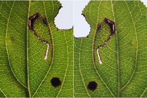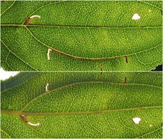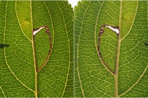 1-4: 4 Minen, Estland, Pärnu maakond, Kihnu, Lemsi küla, buschiger Wegrand, 4 m, an Rhamnus catharticus (Purgier-Kreuzdorn), 18. August 2024, Tagfund (Foto: Mari Leppik)Forum
