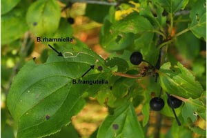 - [Rhamnaceae:] Rhamnus catharticus [= Rhamnus cathartica] (Purgier-Kreuzdorn)