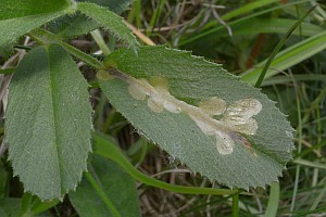 5-6: bereits verlassene Minen an Hauhechel (Ononis repens): Deutschland, Thüringen, Maua bei Jena, Wiese, 27. Mai 2009 (det. & Freilandfotos: Heidrun Melzer)Forum