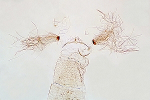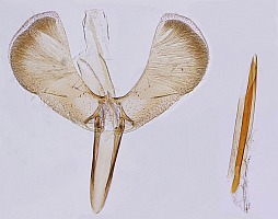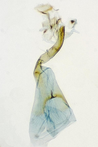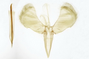 2: ♂, Abdomenende mit den Coremata nach dem Entfernen des Genitals: Deutschland, Baden-Württemberg, 78176 Blumberg, Ortsrandlage, Südhang, in Waldnähe (Buchen-Mischwald, Waldrand mit anschließendem Trespen-Halbtrockenrasen auf Kalk), 720 m, 12. April 2014, am Licht (leg., det. & Foto: Hans-Peter Deuring)Forum