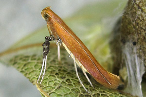 4-6: 5 mm (ohne Fühlerscheiden): Deutschland, Niedersachsen, Bad Nenndorf, 80 m, Gewerbegebiet nahe der A2, Piepmühle, Blattrollen mit Raupen 24. Juli 2018 an jungem Acer pseudoplatanus (Berg-Ahorn), Zuchtfotos 6. August 2018 (cult., det. & fot.: Tina Schulz)
