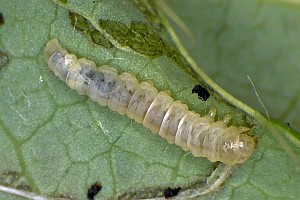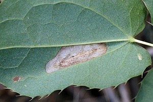 Die zu den Berberitzengewächsen (Berberidaceae) gehörende Elfenblume (Epimedium alpinum) ist die einzige bekannte Nahrungspflanze der Raupen dieser Art in Europa. Klimesch (1946) schrieb dazu: "Gelegentlich eines am 22. Juli 1945 unternommenen Ausfluges in die westlich exponierten Hügel bei Mattarello (Trentino) fielen mir an den im Schatten von Corylus avellana zahlreich wachsenden Epimedium alpinum einzelne leere, Lithocolletisartige Minen sowie Blattumschläge auf. Da mir von der genannten Pflanze noch kein Minierer bekannt war, schenkte ich ihr durch 14 Tage hindurch meine ganze Aufmerksamkeit. Ich konnte während dieser Zeit alle Stadien des Erregers — die Zucht ergab Xanthospilapteryx magnifica Stt. — einsammeln und Beobachtungen über die Lebensweise und die Höhenverbreitung machen ...". Ei, Raupe, Puppe und Minen werden dann sehr ausführlich beschrieben. Schließlich wird festgestellt: "Epimedium alpinum ist eine typische Begleitpflanze des illyrischen Mischwaldes der Südalpen und erreicht im Trentino die Westgrenze seiner zusammenhängenden, von Kroatien längs der Südalpen sich erstreckenden Verbreitung." Für den Kaukasus, also dem Herkunftsgebiet der Typenserie, wird Epimedium pubigerum als Eiablagepflanze vermutet.