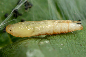 Die Raupe lebt in Blattminen an Eschen.