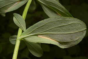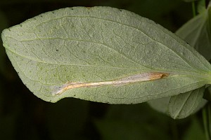 3-4: verlassene Anfangsminen, Deutschland, Sachsen, Doberschütz, Waldweg mit kräuterreicher Randvegetation, an Johanniskraut (Hypericum spec.), 5. Juni 2009 (Freilandfotos: Heidrun Melzer), det. Heidrun MelzerForum