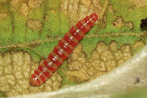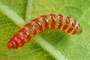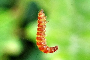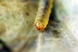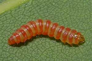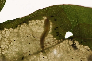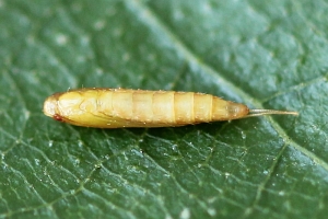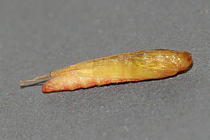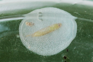 4-5: verpuppungsbereit und verfärbt, nach Verlassen der Mine: Funddaten wie Bild 1 (leg., cult., det. und Fotos: Heidrun Melzer) [Forum 1-5]