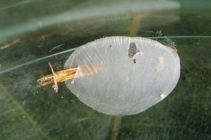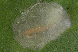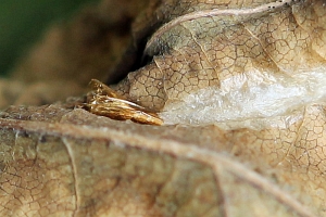 1-2: (2: Verpuppungsgespinst an Blattunterseite), Deutschland, Sachsen, Dübener Heide, Umgebung von Doberschütz, Blasenminen an Blättern junger Eichen (Quercus robur) am 14. Mai 2011 (leg., cult., det. und Studiofotos am 18. Mai 2011: Heidrun Melzer)Forum