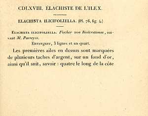 - Elachista ilicifoliella Duponchel, [1843] [Originalkombination]