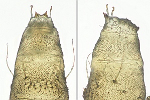 1: Exuvie, Kremaster dorsal/lateral: Österreich, Wien, Pötzleinsdorf, leg. Puppe in Mine an Zerr-Eiche (Quercus cerris) 23. Juni 2020, e.p. 1. Juli 2020 (leg., cult, det. & Fotos: Peter Buchner) Bis 1. August 2020 fehlbestimmt unter Phyllonorycter mannii eingestellt, Bestimmungskorrektur nach Schlupf eine weiteren Falters