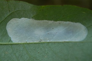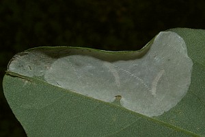 Nach den oben dokumentierten Beobachtungen miniert die Art unterseits an Blättern der Robine (Robinia pseudoacacia); in seltenen Fällen kommen auch oberseitige Minen vor (Erwin Rennwald im [Forum]).
