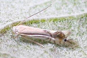 Die junge Raupe miniert zunächst in der Rinde junger Zweige, erst zur Verpuppung hin in einem Blattstiel.