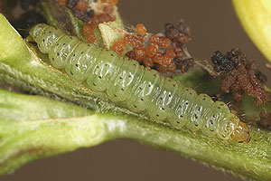 Sonderegger (2011: 158) kann aus der Schweiz über Raupenfunde an drei verschiedenen Läusekraut-Arten berichten: Pedicularis ascendens, Pedicularis tuberosa und Pedicularis verticillata. Alle Falter- und Raupenfunde erfolgten im Bereich der Waldgrenze zwischen 1860 und 2300 m.