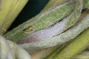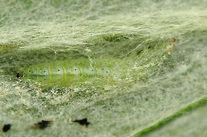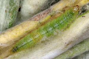 Bei Anaphalis triplinervis (Perlkörbchen, Perlpfötchen, Silberimmortelle) handelt es sich um eine in Mitteleuropa nicht heimische, aus dem Himalaya stammende Gartenpflanze. Die Gattung ist nahe verwandt mit der Gattung Gnaphalium (Ruhrkraut), die in Mitteleuropa mit 5 Arten vertreten ist. Da Anaphalis triplinervis vielfach unter dem Namen Gnaphalium triplinervis geführt wurde, bleibt unklar, ob die Zuchtexemplare von 1952 vom Friedhof in Bern (siehe Faunistik) von "Gnaphalium" nicht doch ebenfalls von Anaphalis triplinervis oder der noch häufiger gepflanzten Anaphalis margaritacea (Großblütiges Perlkörbchen) stammen.