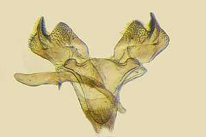 Der erste sichere Nachweis für Deutschland ist durch ein ♂ erbracht, dessen Genitalpräparat oben abgebildet ist. Schon zuvor war an gleicher Stelle ein Falter fotografiert worden, der aber nicht genitalisiert werden konnte: [G. Krumm, Lepiforumsbeitrag 14. Juni 2007], bei dem es sich aber nahezu sicher um genau diese Art handelte. Auch die Tiere aus dem Kaiserstuhl lebten in einem Garten an Anaphalis triplinervis (Perlkörbchen, Perlpfötchen, Silberimmortelle).