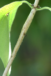 - [Caprifoliaceae:] Lonicera xylosteum (Rote Heckenkirsche, Gewöhnliche Heckenkirsche)