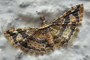 Kontrastreich, die 2 dunklen Binden deutlich von der hellen Grundfarbe abgesetzt. Innere Binde recht gleichmäßig.