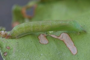 Nach Savchuk & Kajgorodova (2015) sitzen die Raupen auf der Krim (Ukraine) offen auf den Blättern der Strandflieder-Art Limonium scoparium, hauptsächlich auf der Unterseite, und auch auf den Stängeln; es werden Löcher in die Blätter gefressen.