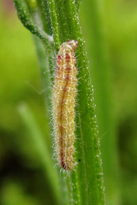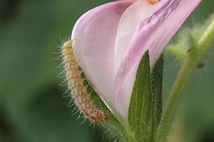 Die oben gezeigten Raupenfunde der Lepiforumsfreunde betreffen Ononis repens (Fabaceae), Euphrasia officinalis (Orobanchaceae), Lavandula sp. (Lamiaceae) und Rhododendron tomentosum (Ericaceae). Vergleicht man das mit der langen Liste von Gielis (1996: 48) fällt auf dass die Raupe nicht einfach "alles" frisst, sondern dass das Ganze schon System hat: mit Ononis repens, Ononis spinosa und Ononis natrix werden bei den Fabaceae die gleiche Art und weitere Arten der gleichen Gattung angeführt - keine Arten anderer Gattungen. Bei den Orobanchaceae wird mit Euphrasia sp. die gleiche Gattung genannt, dazu nur noch "Bartsia sp.". Bei den Lamiaceae wird mit Lavandula stoechas ebenfalls ein Lavendel angeführt, dazu noch Stachys sylvatica, Teucrium scorodonia, Clinopodium nepeta, Nepeta sp., Salvia sp. und Mentha sp. und bei den Ericaceae finden sich Angaben zu Calluna vulgaris, Erica tetralix und Vaccinium oxycoccos. Dazu kommen nur noch Angaben zu 4 weiteren Arten aus drei weiteren Pflanzenfamilien: Chenopodium sp. (Amaranthaceae), Geranium robertianum (Geraniaceae), Carlina sp. und Jurinea sp. (Asteraceae). Alle Angaben zu jenen drei Familien finden sich schon in der Sekundärliteratur von Mitterberger (1912), sind also sehr alt und keineswegs sicher.
