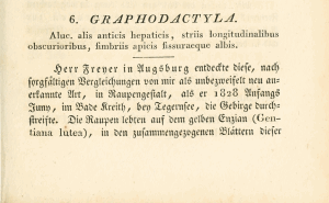 Und was ist mit der Erstbeschreibung von S. graphodactyla ? Dort wurde doch ausdrücklich betont, dass die Raupen am locus typicus bei Wildbad Kreuth an Gentiana lutea gesammelt wurden! Bisher scheint jedenfalls noch ziemlich unklar zu sein, was S. graphodactyla überhaupt ist. Zunächst einmal das, was in der Erstbeschreibung steht. Und dann müsste man doch den Lectotypus mal anschauen ...