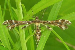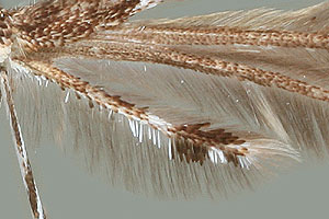 Graubraune Art, weniger rötlich und etwas kleiner als Capperia britanniodactylus; schwarze Randbeschuppung der letzten Hinterflügelfeder die Federspitze nicht ganz erreichend, am Vorderrand wenig kürzer als am Hinterrand, am Hinterrand vor der Federspitze durch weisse Schuppen unterbrochen.