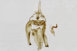 9-10: ♂, Österreich, Steiermark, Graz, St. Peter,  ca. 380 m, Garten, Mischwaldrand, am Licht, 4. Juli 2021 (det. & Foto: Horst Pichler), Genitalfoto im ForumForum