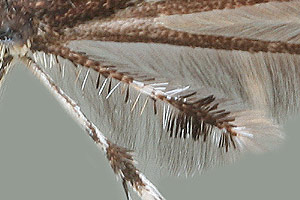 Mittelgross, dunkler als die andern Capperia-Arten; Randbeschuppung der letzten Hinterflügelfeder am Vorderrand kürzer als am Hinterrand, die Federspitze beidseits nicht erreichend, an der Federspitze einzelne nach unten gerichtete schwarze Schuppen. (Text: Rudolf Bryner)
