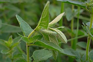 1-2: Befallsbilder an Dost (Origanum vulgare) mit Raupe an der umgeknickten Triebspitze: Deutschland, Thüringen, Umg. Jena-Göschwitz, 30. Mai 2012 (det. & Freilandfotos: Heidrun Melzer)Forum