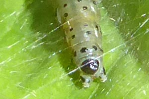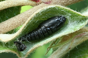 Auch die Liste von Hancock et al. (2015: 30) ist viel zu lang: "About 300 eggs are laid, singly or in batches of two to four, in July - August, usually on the underside of leaves of hawthorn (Crataegus spp.), blackthorn (Prunus spinosa or wild cherry (Prunus avium); less often on other trees and shrubs including peat (Pyrus communis), crab-apple (Malus sylvestris), bog-myrtle (Myrica gale), bilberry (Vaccinium myrtillus), ash (Fraxinus excelsior), species of birch (Betula), alder (Alnus), rose (Rosa), Sorbus, willow (Salix) and oak (Quercus)".
