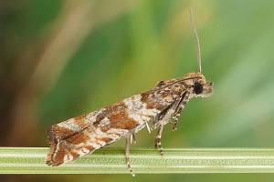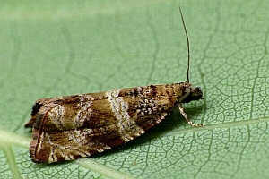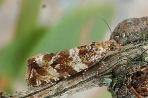 [tortricidae.com] listet für Nordamerika noch Fragaria sp. (Rosaceae) und dazu eine ganze Reihe von Baumarten sehr unterschiedlicher Familien: Castanea sp. (Fagaceae), Populus balsamifera, Populus tremuloides, Populus sp. (Salicaceae), Picea engelmanni, Larix occidentalis (Pinaceae) und sogar "Poaceae". Ich habe die entsprechenden Originalarbeiten dazu noch nicht eingesehen, aber vermutlich handelt es sich bei den Baumarten um Schäden an Jungwuchs, die pauschal diesem Falter zugeordnet wurden. Zweifel an einer guten Absicherung der Angaben erscheinen mir hier - wie fast allgemein bei forstwissenschaftlicher Literatur - sehr angebracht. Die Nutzung von Gräsern ist sehr fraglich.