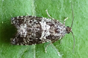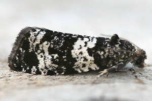 Bei Kennel (1916: 405) heißt es dann: "Die Raupe ist grünlich bräunlich, der Kopf hellbraun, das Nackenschildchen etwas bräunlicher als der Körper, das Analschildchen ohne Auszeichnung. Sie lebt an Moos, besonders an Stämmen von Nadelholz, im Mai".