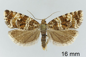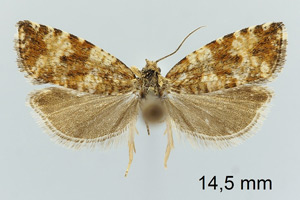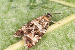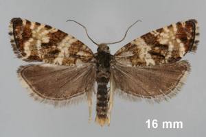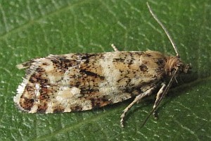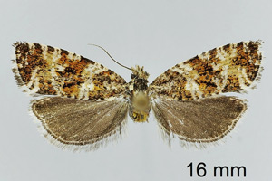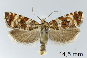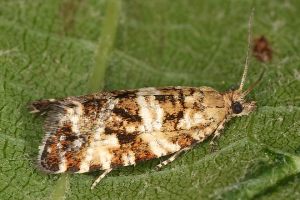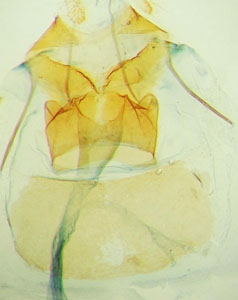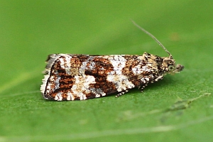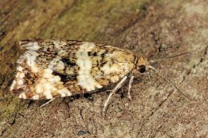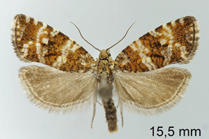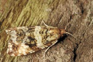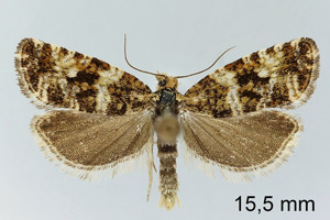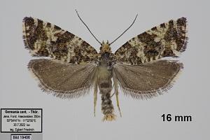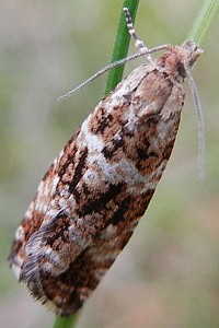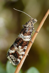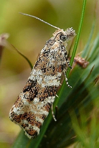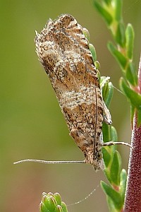 Razowski (2001: 68) hatte später zur Raupennahrung formuliert: "Moosen z.B. Dicranum." Heckford et al. (2015) bestätigen das für England - siehe dazu das oben gezeigte Raupenfoto von West Lancashire, Gannow Fell, leg. im April 2015 in seidenem Gespinst an Dicranum scoparium, e.p. 17. Mai 2015, det. durch Zucht & Foto Bob Heckford.