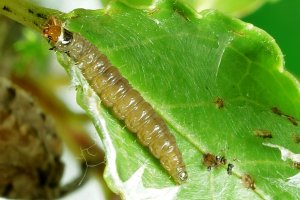 Die Raupe dieses kleinen Schmetterlings kann man in den Kiefernwäldern um Knappenrode (Sachsen, Oberlausitz) vom Herbst an bis in den Mai hinein oft in großer Anzahl finden. Sie lebt hier nur an Orthilia secunda(L.), dem Birngrün, obwohl in der Nachbarschaft auch noch Rundblättriges Wintergrün wächst. Die Raupe ist stark parasitiert. Der Falter konnte hier noch nicht gesichtet werden. [Friedmar Graf]