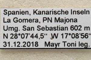 1-2: Spanien, Kanarische Inseln, La Gomera, Daten siehe Etikett (Foto: Helmut Deutsch), leg., det. & coll. Toni MayrForum