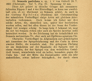 - Erstbeschreibung: Kennel, J. (1900): Neue paläarktische Tortriciden, nebst Bemerkungen über einige bereits beschriebene Arten. — Deutsche Entomologische Zeitschrift Iris 13 (1-2): 124-159 [1900] + Taf. V [1901].