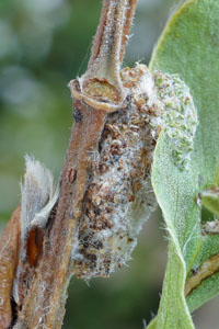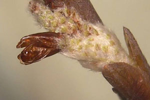 2: Österreich, Niederösterreich, St. Egyden am Steinfeld, besetzte Knospe von Silberpappel (Populus alba), 9. April 2009 (Foto: Peter Buchner), leg., cult & det. Peter Buchner.Forum