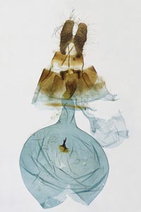1: Gypsonoma sociana, ♂: Schweiz, Bern, Chasseral, 1110 m, Buchen-Fichten-Mischwald, 10. Juni 2004, Lichtfang (Präparatefoto: Rudolf Bryner), det. Rudolf Bryner