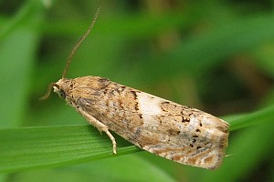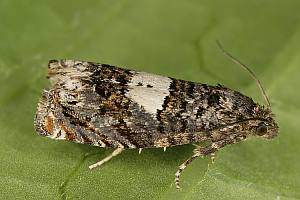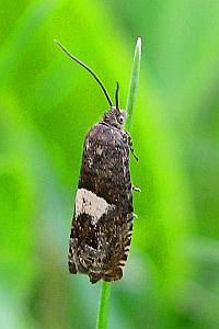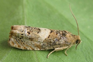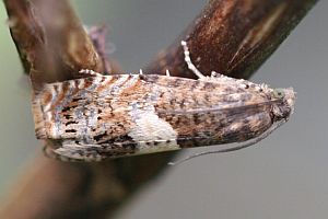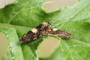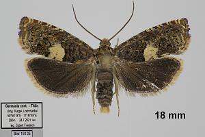 Epiblema cirsiana ist größer und etwas breitflügeliger als die ähnliche E. sticticana. (Friedmar Graf)