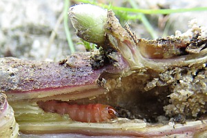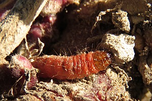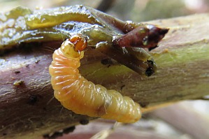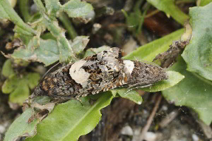Bei Razowski (2001: 84) - jetzt unter dem richtigen Artnamen - ist zur Raupe zu lesen: "St[ängel], Wu[rzel]; Tussilago farfara, Petasites fragrans, Arctium lappa (Asteraceae)". Die Große Klette ist dabei wahrscheinlich falsch. Sie findet sich als Sekundärzitat schon bei Gartner (1865: 150): "Die Raupe soll nach Goldegg im Marke von Arctium Lappa leben."