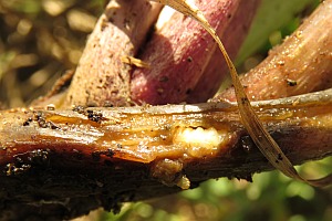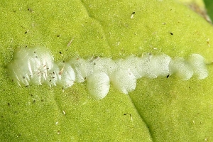 Bei Hancock et al. (2015: 159) wird Eiablage an Tussilago farfara erwähnt, "or occasionally on winter heliotrope (Petasites fragrans)." Petasites pyrenaicus ist in Westeuropa als Neophyt aus Südeuropa eingebürgert.