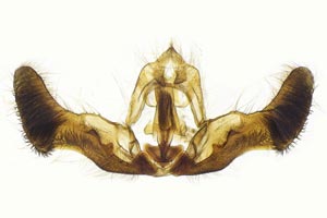 Gardner (1911a: 111-112) war der Erste, der über eigene Raupenfunde (in England) an dieser Pflanze berichten konnte: "Naturally, as the moth is always found attached to this plant, it has been surmised that the larva must feed on the roots of the butter-bur. To settle the point if possible, I invited my friend Mr. James Corder, of thunderland, to join me in a visit to Greatham, where I had previously taken the moth, to search for the larva. We journeyed to the ground on the morning of March 25th [...] and after about three hours' hard work succeeded in finding about a dozen each of what there can be little doubt is this long undescribed larva. They were found by digging up the crown of the plant, when short tunnels two or three inches long were visible, either twisting about the crown or descending into the fleshy roots ; these tunnels were more or less filled with fine wet frass, and mixed with this, so as to be rather hard to make out, was a flimsy light-coloured cocoon fitting tightly to the larva, which was indistinctly visible through it. It seems probable that the eggs are laid in early July at the base of the leaves, and that the young larvae burrow their way down into the roots, becoming full fed in the autumn or early winter, hibernating in the cocoon as a larva, as none that we observed appeared to be feeding." Gardner (1911b: 192) konnte dann endlich berichten, dass die Zucht zum Falter die erwartete Artzuordnung erbracht hat.