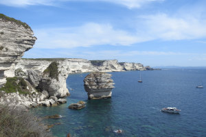 Varenne, Nel & Peslier (2020: 71-73) machen keine ganz genauen Ortsangaben zum locus typicus: « dans l'extrême sud de la Corse, sur les terrains calcaires de la région de Bonifacio ». Aus der Höhenangabe 80 m lässt sich schließen, dass nur der am Ostende der Altstadt von Bonifacio beginnende, sich nach Südosten ziehende Küstenabschnitt in Frage kommt, denn die wenigen Kalksteinfelsen westlich der Altstadt und die Altstadt selbst erreichen weniger als 80 m Meereshöhe. Rechts am Horizont des Fotos ist die Nordküste von Sardinien zu sehen, wo nach Varenne, Nel & Peslier (2020) dieselben geologischen Schichten vorkommen, so dass die Art auch dort vorkommen könnte.