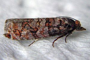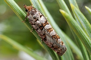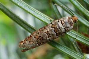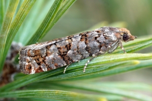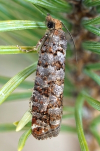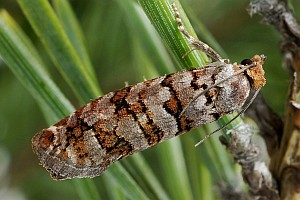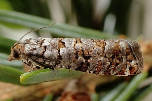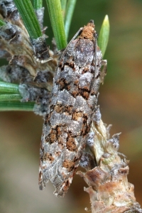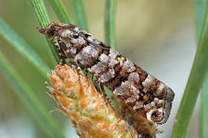 Nach Razowski (2001: 87) scheint alles klar zu sein: "Tr[iebe], Za[pfen]; Pinus, Abies, Picea (Pinaceae)." - Primärquellen werden aber nicht genannt.