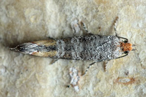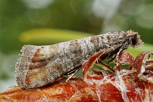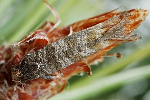 Anmerkung: am 9. Mai 2024 wurde ein Foto auf Grund der Fühler nach Rhyacionia logaea verschoben. Das Ergebnis eines Barcodings steht noch aus [Forum].